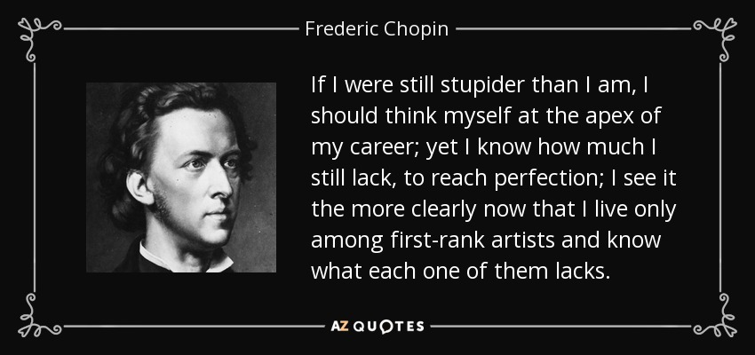 If I were still stupider than I am, I should think myself at the apex of my career; yet I know how much I still lack, to reach perfection; I see it the more clearly now that I live only among first-rank artists and know what each one of them lacks.