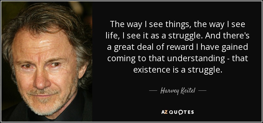 The way I see things, the way I see life, I see it as a struggle. And there's a great deal of reward I have gained coming to that understanding - that existence is a struggle.