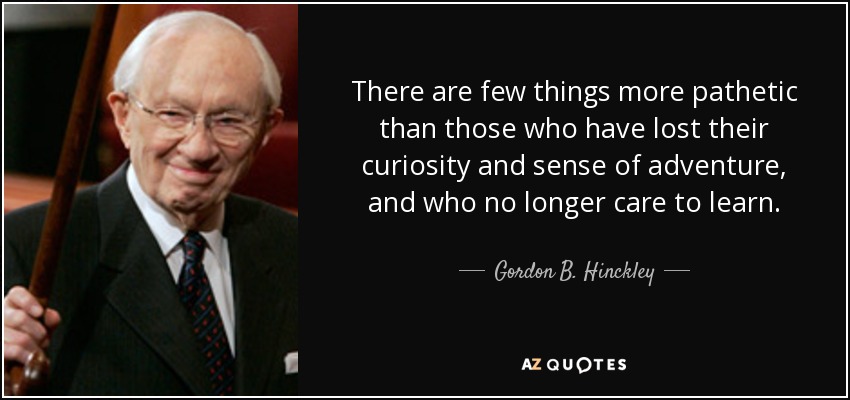 There are few things more pathetic than those who have lost their curiosity and sense of adventure, and who no longer care to learn.