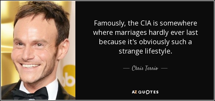 Famously, the CIA is somewhere where marriages hardly ever last because it's obviously such a strange lifestyle.