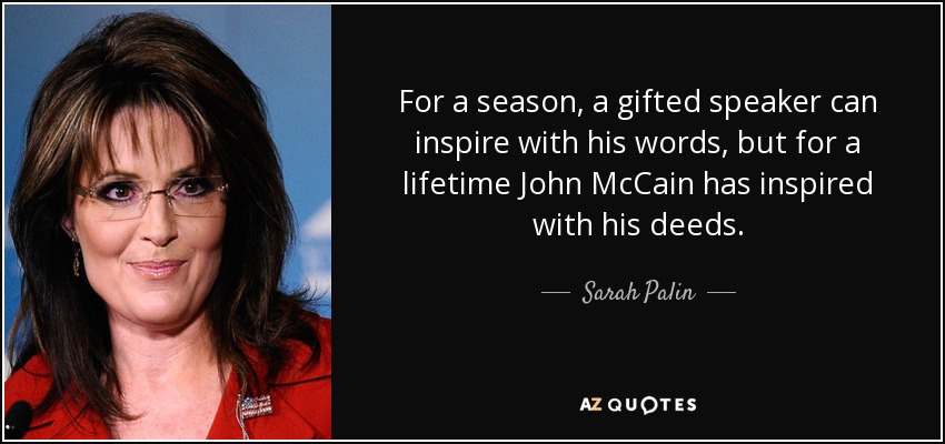 For a season, a gifted speaker can inspire with his words, but for a lifetime John McCain has inspired with his deeds.