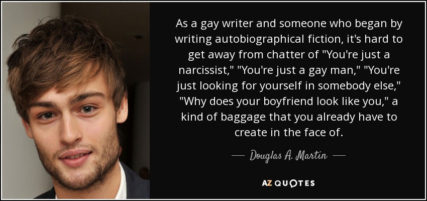 As a gay writer and someone who began by writing autobiographical fiction, it's hard to get away from chatter of "You're just a narcissist," "You're just a gay man," "You're just looking for yourself in somebody else," "Why does your boyfriend look like you," a kind of baggage that you already have to create in the face of.
