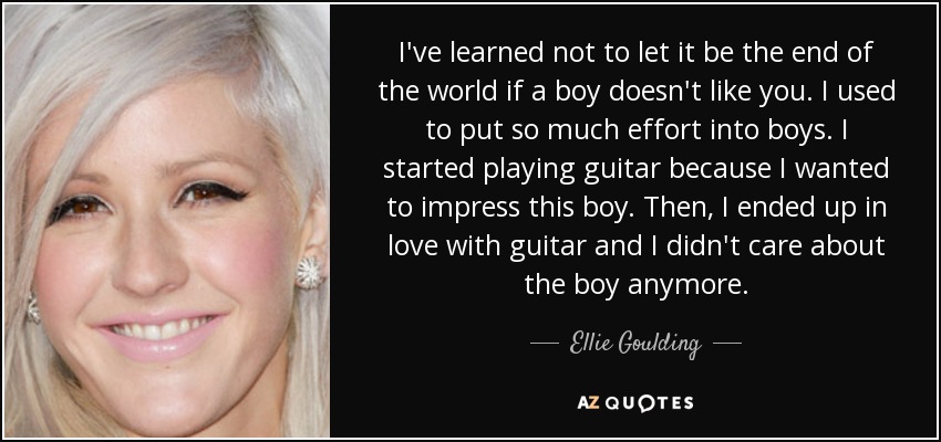 I've learned not to let it be the end of the world if a boy doesn't like you. I used to put so much effort into boys. I started playing guitar because I wanted to impress this boy. Then, I ended up in love with guitar and I didn't care about the boy anymore.