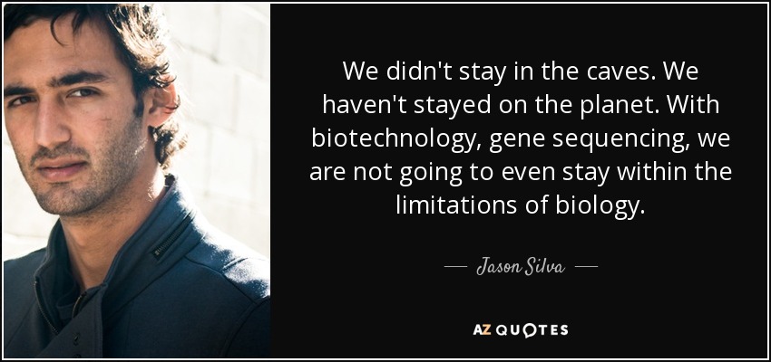 We didn't stay in the caves. We haven't stayed on the planet. With biotechnology, gene sequencing, we are not going to even stay within the limitations of biology.