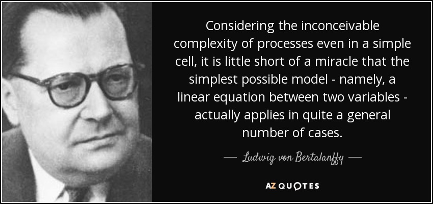 Considering the inconceivable complexity of processes even in a simple cell, it is little short of a miracle that the simplest possible model - namely, a linear equation between two variables - actually applies in quite a general number of cases.