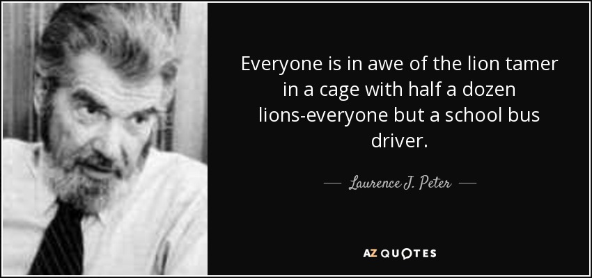 Everyone is in awe of the lion tamer in a cage with half a dozen lions-everyone but a school bus driver.