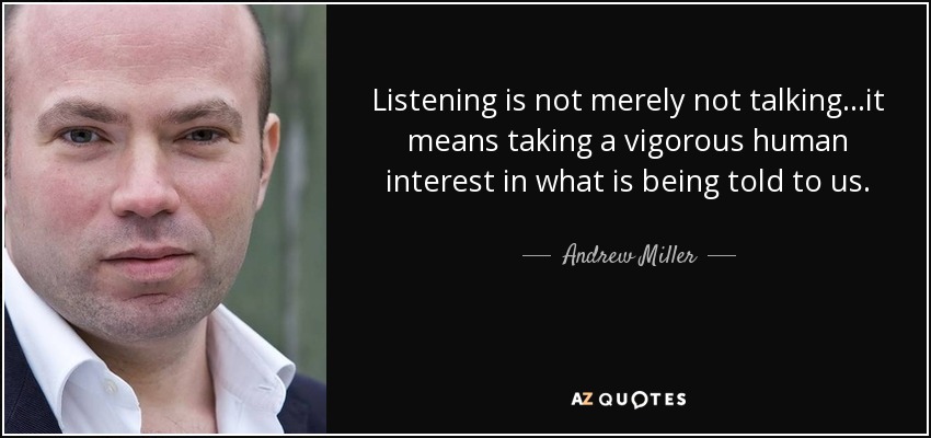 Listening is not merely not talking...it means taking a vigorous human interest in what is being told to us.