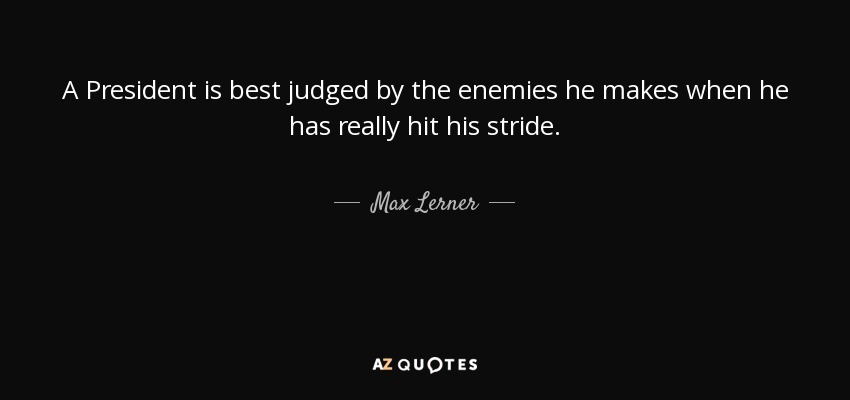 A President is best judged by the enemies he makes when he has really hit his stride.