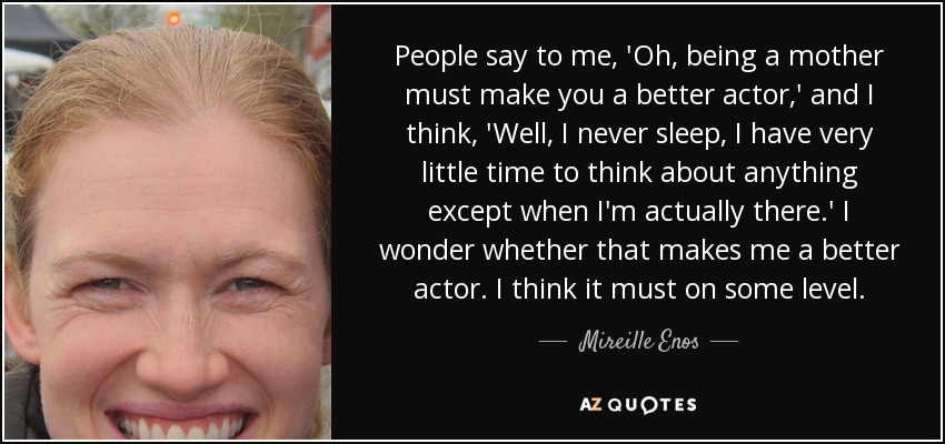 People say to me, 'Oh, being a mother must make you a better actor,' and I think, 'Well, I never sleep, I have very little time to think about anything except when I'm actually there.' I wonder whether that makes me a better actor. I think it must on some level.