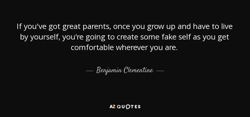 If you've got great parents, once you grow up and have to live by yourself, you're going to create some fake self as you get comfortable wherever you are.