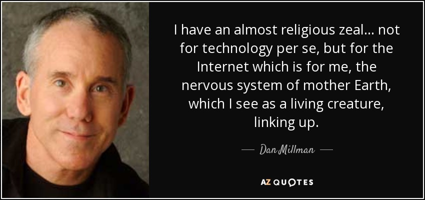 I have an almost religious zeal... not for technology per se, but for the Internet which is for me, the nervous system of mother Earth, which I see as a living creature, linking up.
