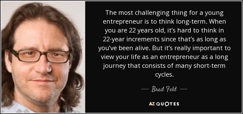 The most challenging thing for a young entrepreneur is to think long-term. When you are 22 years old, it’s hard to think in 22-year increments since that’s as long as you’ve been alive. But it’s really important to view your life as an entrepreneur as a long journey that consists of many short-term cycles.