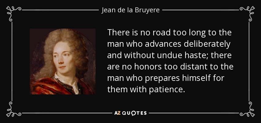 There is no road too long to the man who advances deliberately and without undue haste; there are no honors too distant to the man who prepares himself for them with patience.