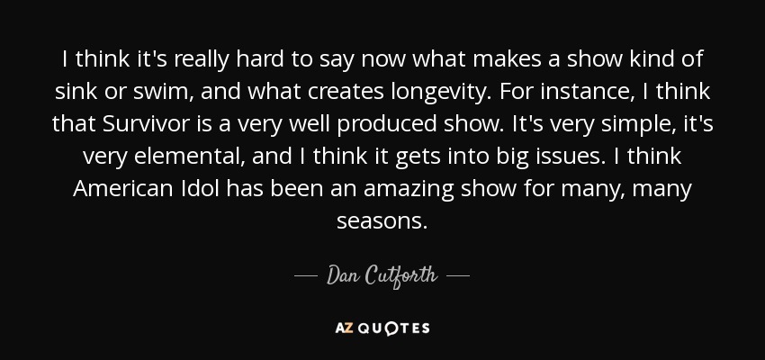 I think it's really hard to say now what makes a show kind of sink or swim, and what creates longevity. For instance, I think that Survivor is a very well produced show. It's very simple, it's very elemental, and I think it gets into big issues. I think American Idol has been an amazing show for many, many seasons.