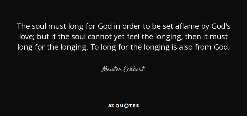 The soul must long for God in order to be set aflame by God's love; but if the soul cannot yet feel the longing, then it must long for the longing. To long for the longing is also from God.