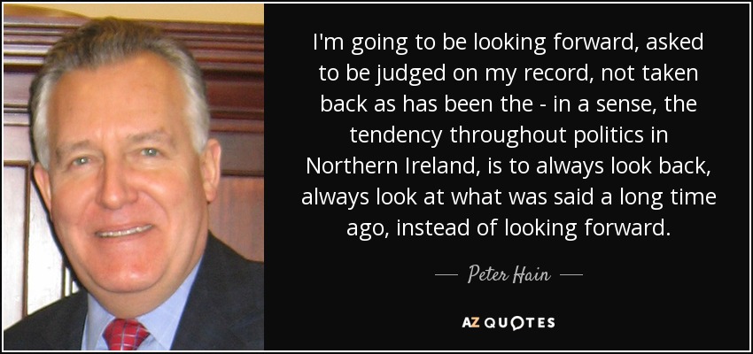 I'm going to be looking forward, asked to be judged on my record, not taken back as has been the - in a sense, the tendency throughout politics in Northern Ireland, is to always look back, always look at what was said a long time ago, instead of looking forward.