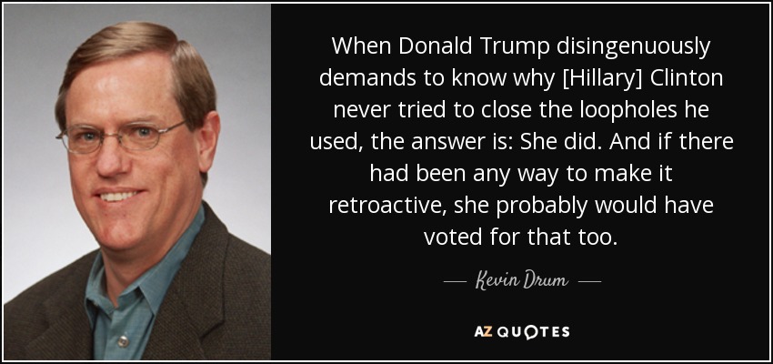 When Donald Trump disingenuously demands to know why [Hillary] Clinton never tried to close the loopholes he used, the answer is: She did. And if there had been any way to make it retroactive, she probably would have voted for that too.