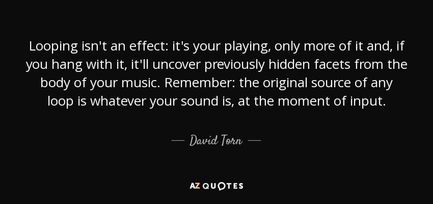 Looping isn't an effect: it's your playing, only more of it and, if you hang with it, it'll uncover previously hidden facets from the body of your music. Remember: the original source of any loop is whatever your sound is, at the moment of input.