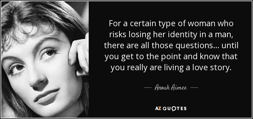 For a certain type of woman who risks losing her identity in a man, there are all those questions . . . until you get to the point and know that you really are living a love story.