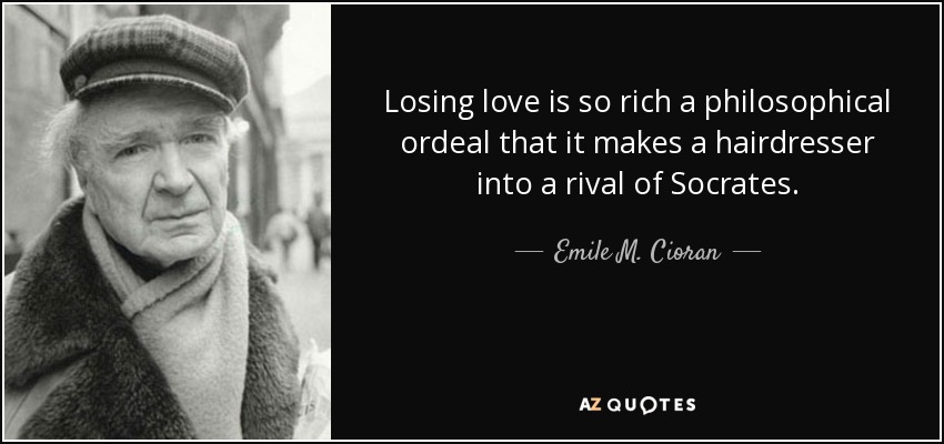 Losing love is so rich a philosophical ordeal that it makes a hairdresser into a rival of Socrates.