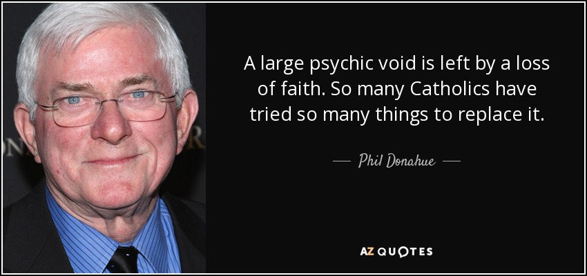 A large psychic void is left by a loss of faith. So many Catholics have tried so many things to replace it.