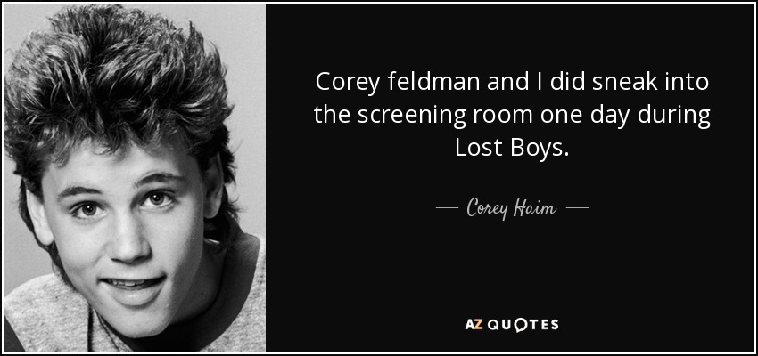 Corey feldman and I did sneak into the screening room one day during Lost Boys.