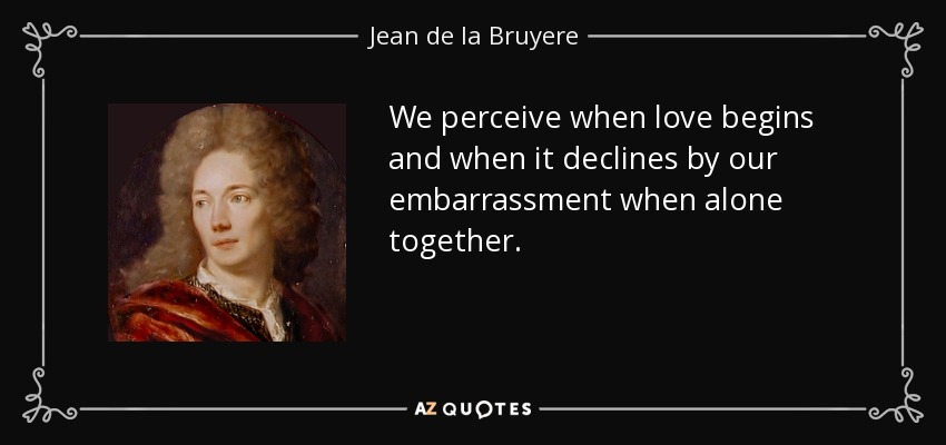 We perceive when love begins and when it declines by our embarrassment when alone together.