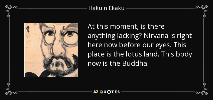 At this moment, is there anything lacking? Nirvana is right here now before our eyes. This place is the lotus land. This body now is the Buddha.
