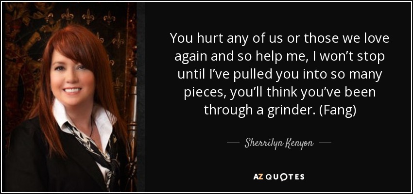 You hurt any of us or those we love again and so help me, I won’t stop until I’ve pulled you into so many pieces, you’ll think you’ve been through a grinder. (Fang)