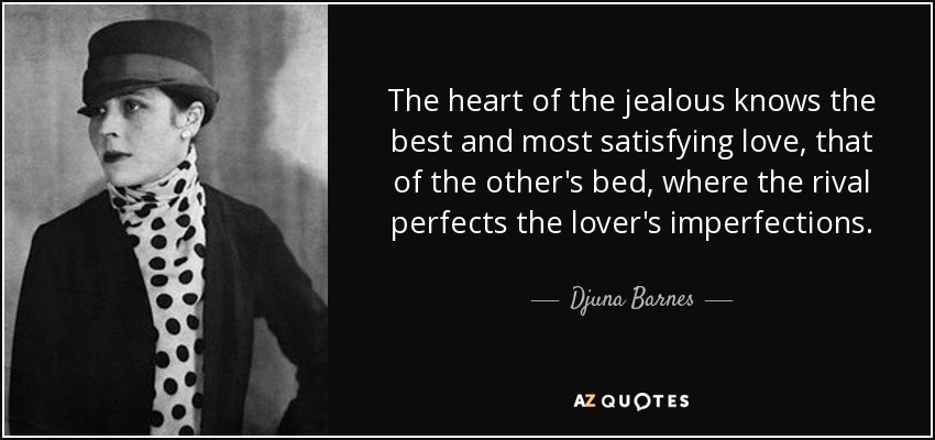 The heart of the jealous knows the best and most satisfying love, that of the other's bed, where the rival perfects the lover's imperfections.