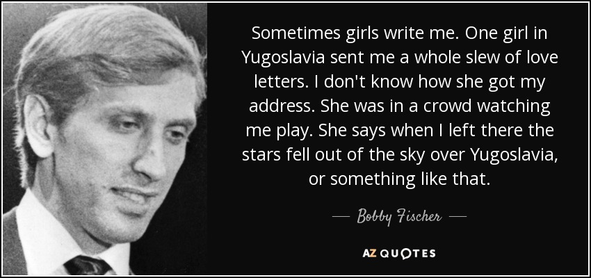 Sometimes girls write me. One girl in Yugoslavia sent me a whole slew of love letters. I don't know how she got my address. She was in a crowd watching me play. She says when I left there the stars fell out of the sky over Yugoslavia, or something like that.