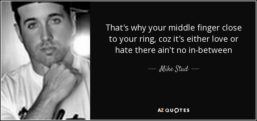 That's why your middle finger close to your ring, coz it's either love or hate there ain't no in-between
