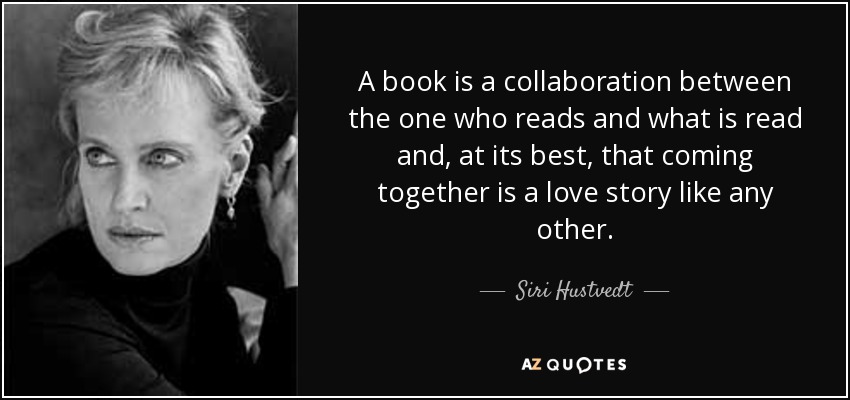 A book is a collaboration between the one who reads and what is read and, at its best, that coming together is a love story like any other.