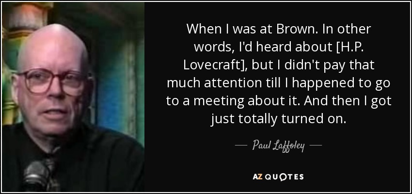 When I was at Brown. In other words, I'd heard about [H.P. Lovecraft], but I didn't pay that much attention till I happened to go to a meeting about it. And then I got just totally turned on.