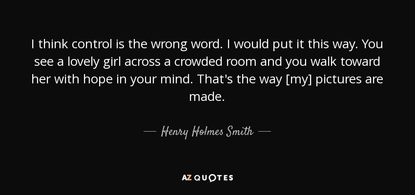 I think control is the wrong word. I would put it this way. You see a lovely girl across a crowded room and you walk toward her with hope in your mind. That's the way [my] pictures are made.
