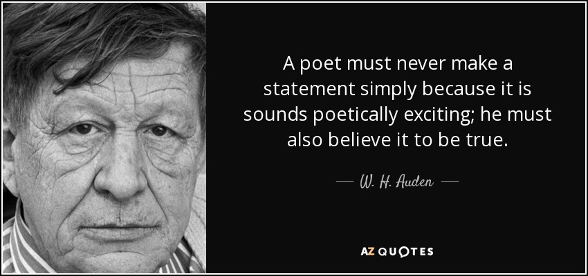 A poet must never make a statement simply because it sounds poetically exciting; he must also believe it to be true." - W. H. Auden "A poem...begins as a lump in the throat, a sense of wrong, a homesickness, a lovesickness...It finds the thought and the thought finds the words.