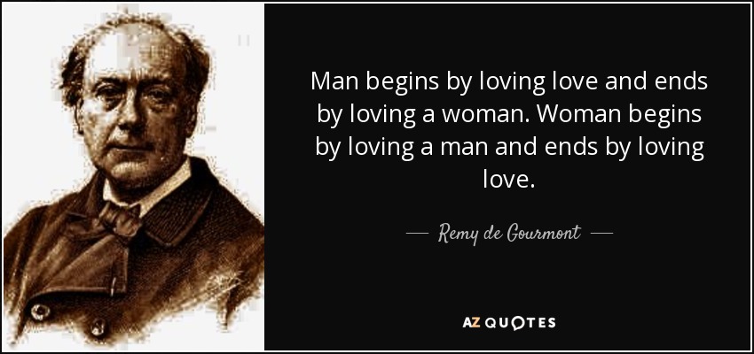 Man begins by loving love and ends by loving a woman. Woman begins by loving a man and ends by loving love.