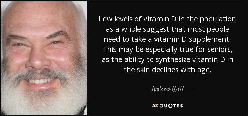 Low levels of vitamin D in the population as a whole suggest that most people need to take a vitamin D supplement. This may be especially true for seniors, as the ability to synthesize vitamin D in the skin declines with age.