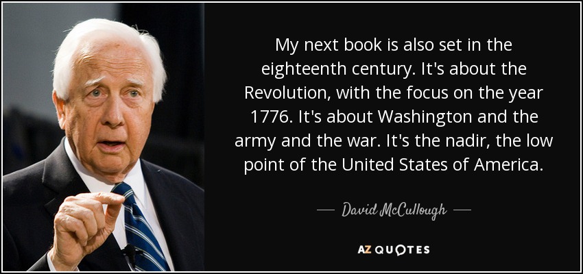 My next book is also set in the eighteenth century. It's about the Revolution, with the focus on the year 1776. It's about Washington and the army and the war. It's the nadir, the low point of the United States of America.