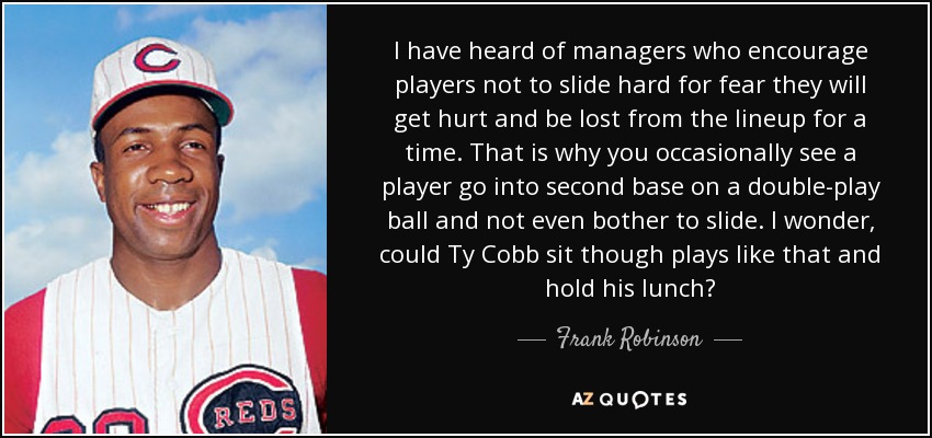 I have heard of managers who encourage players not to slide hard for fear they will get hurt and be lost from the lineup for a time. That is why you occasionally see a player go into second base on a double-play ball and not even bother to slide. I wonder, could Ty Cobb