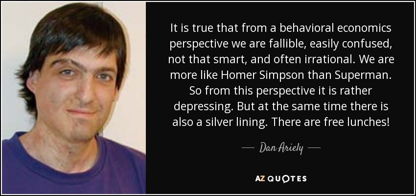 It is true that from a behavioral economics perspective we are fallible, easily confused, not that smart, and often irrational. We are more like Homer Simpson than Superman. So from this perspective it is rather depressing. But at the same time there is also a silver lining. There are free lunches!