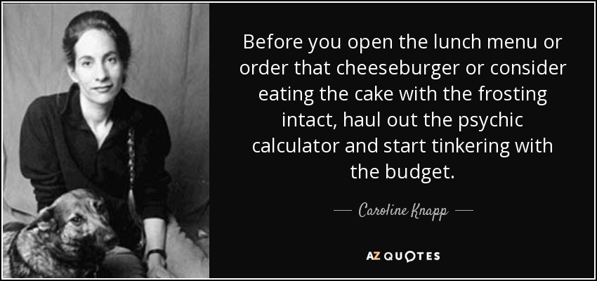Before you open the lunch menu or order that cheeseburger or consider eating the cake with the frosting intact, haul out the psychic calculator and start tinkering with the budget.