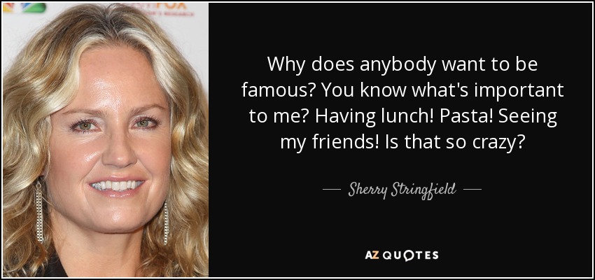 Why does anybody want to be famous? You know what's important to me? Having lunch! Pasta! Seeing my friends! Is that so crazy?