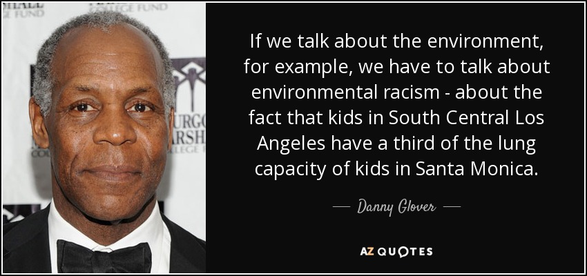 If we talk about the environment, for example, we have to talk about environmental racism - about the fact that kids in South Central Los Angeles have a third of the lung capacity of kids in Santa Monica.