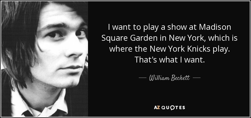 I want to play a show at Madison Square Garden in New York, which is where the New York Knicks play. That's what I want.
