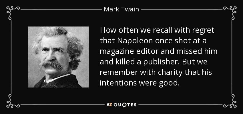 How often we recall with regret that Napoleon once shot at a magazine editor and missed him and killed a publisher. But we remember with charity that his intentions were good.