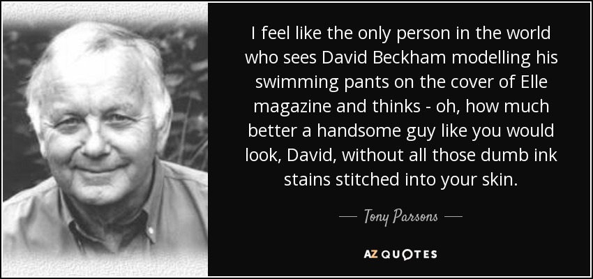 I feel like the only person in the world who sees David Beckham modelling his swimming pants on the cover of Elle magazine and thinks - oh, how much better a handsome guy like you would look, David, without all those dumb ink stains stitched into your skin.
