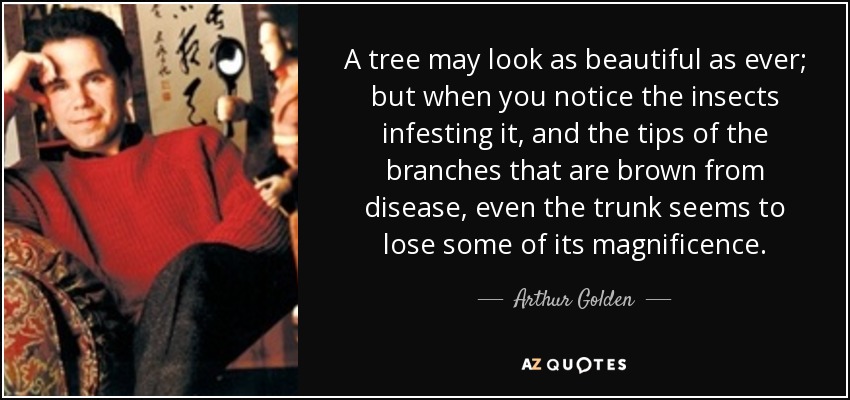 A tree may look as beautiful as ever; but when you notice the insects infesting it, and the tips of the branches that are brown from disease, even the trunk seems to lose some of its magnificence.