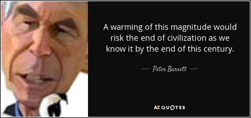 A warming of this magnitude would risk the end of civilization as we know it by the end of this century.