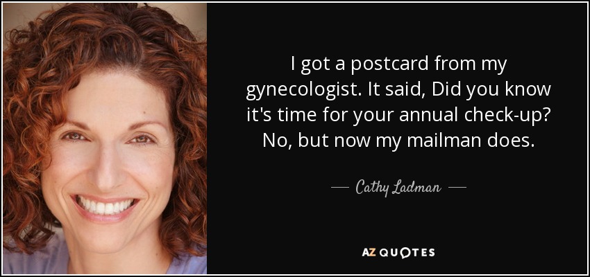 I got a postcard from my gynecologist. It said, Did you know it's time for your annual check-up? No, but now my mailman does.